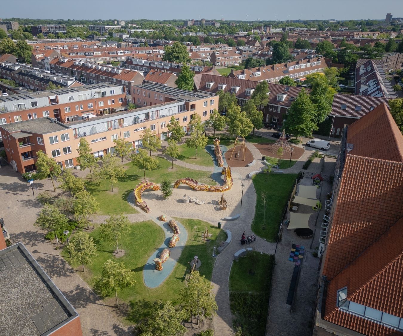 In opdracht van de Gemeente Utrecht hebben we het Drakenplein in de Rivierenwijk volledig vergroend. Wat eerst een versteende stadsplek was, is nu een groene oase midden in de stad. In slechts twaalf weken tijd maakten we ruimte voor nieuw groen, verbeterden we de wateropvang met een wadi en plantten we duizenden planten en bomen. Een project waar we met trots op terugkijken.